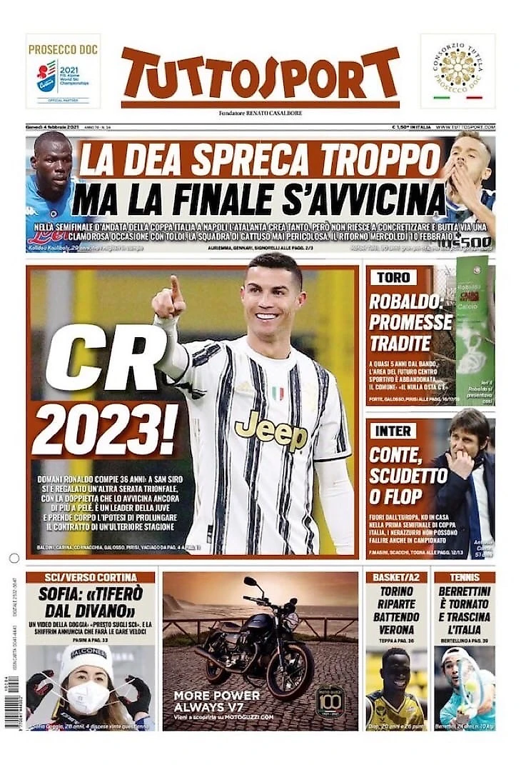 Завтра Роналду отмечает 36 лет: на «Сан Сиро» он подарил ещё один триумфальный вечер, благодаря дублю, который ещё более приблизил его к Пеле. Он – лидер «Юве» и принимают форму гипотезы о продлении контракта на последующий сезон.