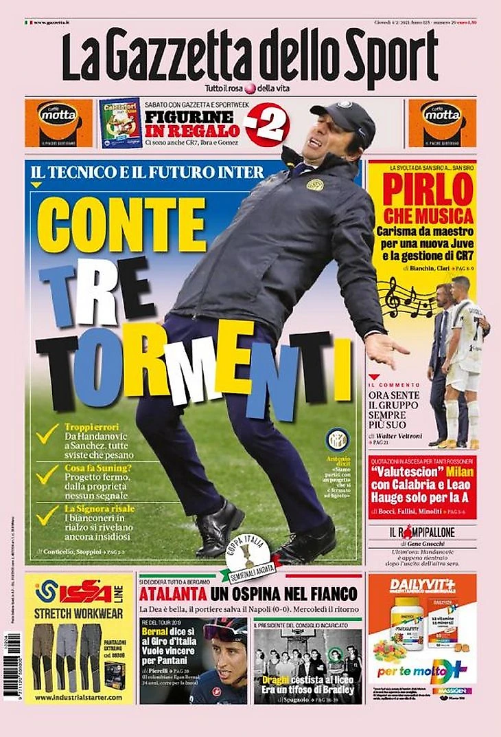 Ничья «Наполи» и «Аталанты» в первом матче полуфинала Кубка, проблемы Конте, а также отличная форма Роналду – в утреннем обзоре заголовков итальянских спортивных изданий в блоге «В гостях у Кальчо».