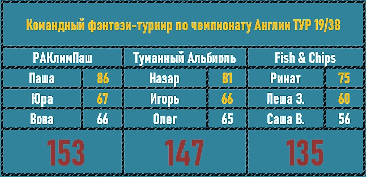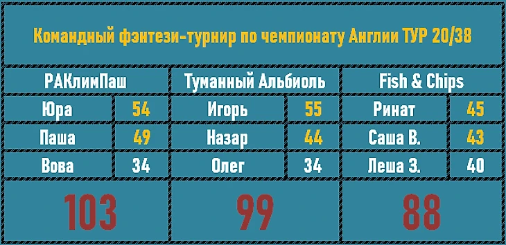 Во втором обозреваемом туре результаты повторились - снова РАКлимПаш на первом месте, чуточку им проиграли ребята из Туманного Альбиоля. А вот Fish & Chips второй тур подряд показывает неубедительную игру.