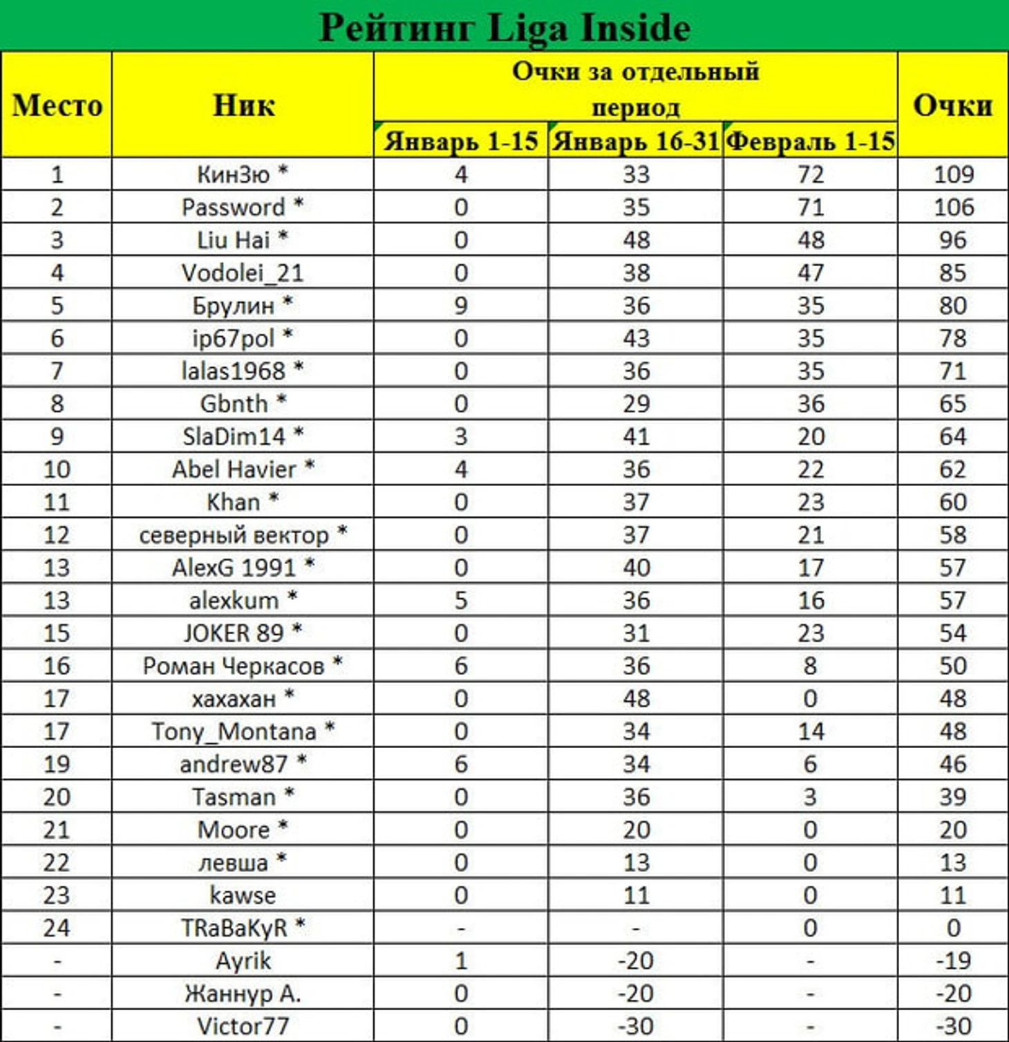 аndrew87, JOKER89, ip67pol, Vodolei_21, AlexG 1991, Tasman, Password, alexkum; Брулин; lalas1968; sergei556, Tony_Montana, kawse, Роман Черкасов, COM.bat, Khan, Liu Hai, КинЗю, хахахан, Abel Havier, antonuv, левша, Moore, северный вектор, Олег Волвенко, НЕРОНАЛДО, vilnietis, TRaVaKuR, Gbnth, Алексей Трасковский, GraphM