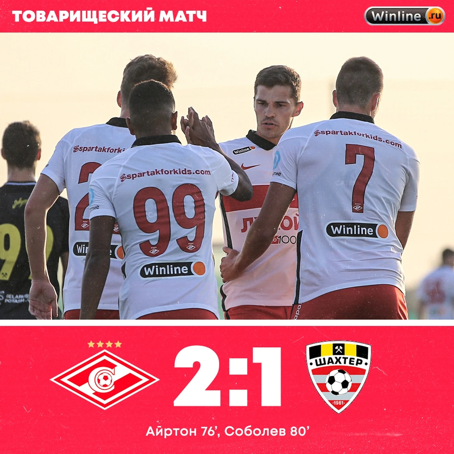 «Спартак» — «Шахтёр» (Солигорск, Белоруссия) — 2:1 (0:1).