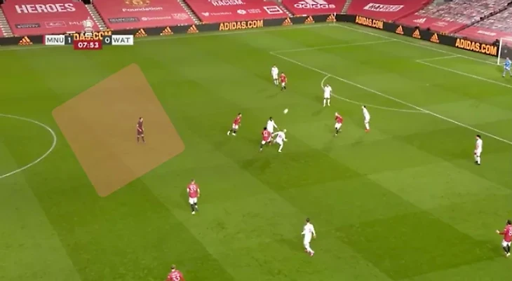 Это пространство, которое нужно защищать. Это правда, что там нет игроков «Уотфорда», и это не выглядит угрозой, но один рывок и одна передача могут быстро это изменить. Вот почему у вас должны быть опорные полузащитники, чтобы защитить защиту. Если вы оставите это пространство открытым, вы поймете что может случиться, тоже самое было в матче с Кристал Пэлес.