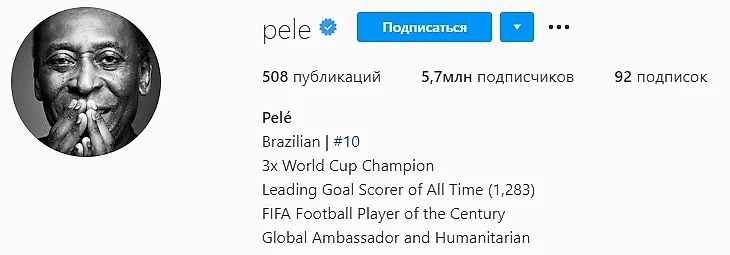 Правда, есть другие системы подсчета – там Роналду еще не догнал ни Пеле, ни тем более Бицана. Но бразилец сыграл на опережение – изменил описание в профиле инстаграма: «Лучший бомбардир всех времен – 1283 мяча».