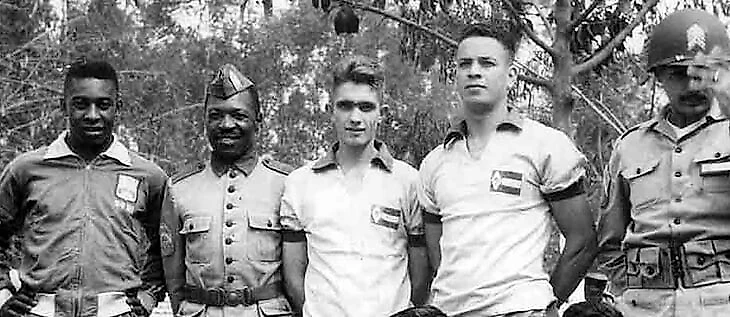 1959 год вышел у Пеле особенно насыщенным. Осенью он еще и пошел служить в армию, несмотря на то, что к тому времени уже выиграл чемпионат мира. Его целенаправленно не стали отмазывать, чтобы повысить престиж бразильской армии и привлечь к ней внимание молодежи.