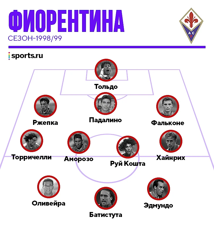 Как все команды Трапаттони, «Фиорентина» не брала на себя слишком много. Команда играла от обороны, в логичном расчете, что большинство угроз разобьется о Тольдо. Отобрав мяч, пасовала на Кошту: Руй задавал темп и в нужный момент отдавал Батистуте, а тот волок на себе ползащиты и бил с такой силой, что вратарям впору было укрываться за штангой. Когда не получалось, находили Эдмундо – он накручивал по двое-трое и создавал численное превосходство. Если кто-то из соперников был слишком хорош, его ломал Томаш Ржепка.