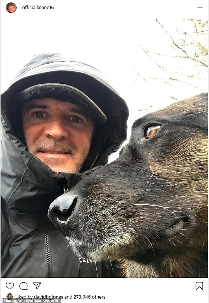 Рой Кин отметил свое прибытие в Instagram, опубликовав в пятницу снимок со своей собакой.