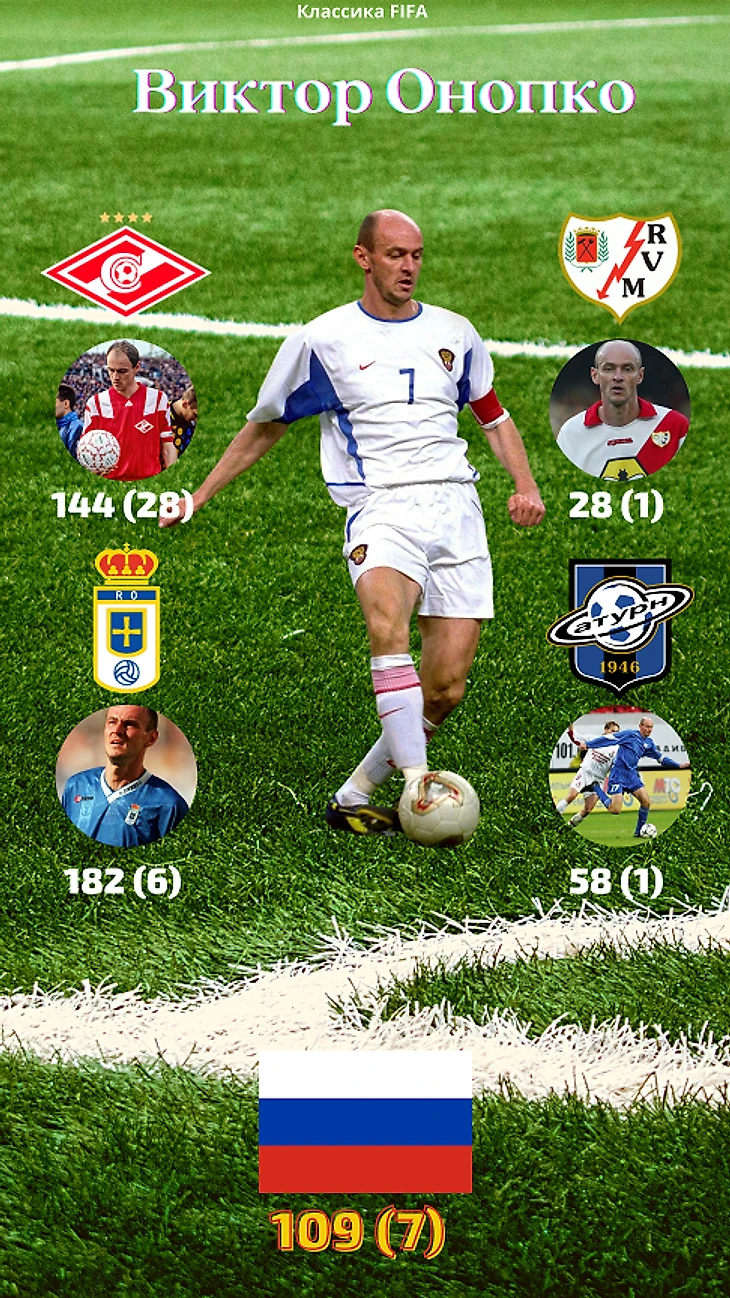 Центральный защитник – Виктор Онопко. Родился в Луганске, воспитанник местной «Зари». На взрослом уровне дебютировал в донецком «Шахтере», играл также за киевское «Динамо», «Райо Вальекано», владикавказский «Спартак-Алания», раменский «Сатурн». Основную часть карьеры провел в московском «Спартаке» и испанском «Овьедо». 3-кратный чемпион России, 2-кратный обладатель кубка России со «Спартаком». Участвовал в 2 Чемпионатах Европы и 2 Чемпионатах мира. Занимает третье место по числу игр за сборную России – в 109 матчах забил 7 голов.