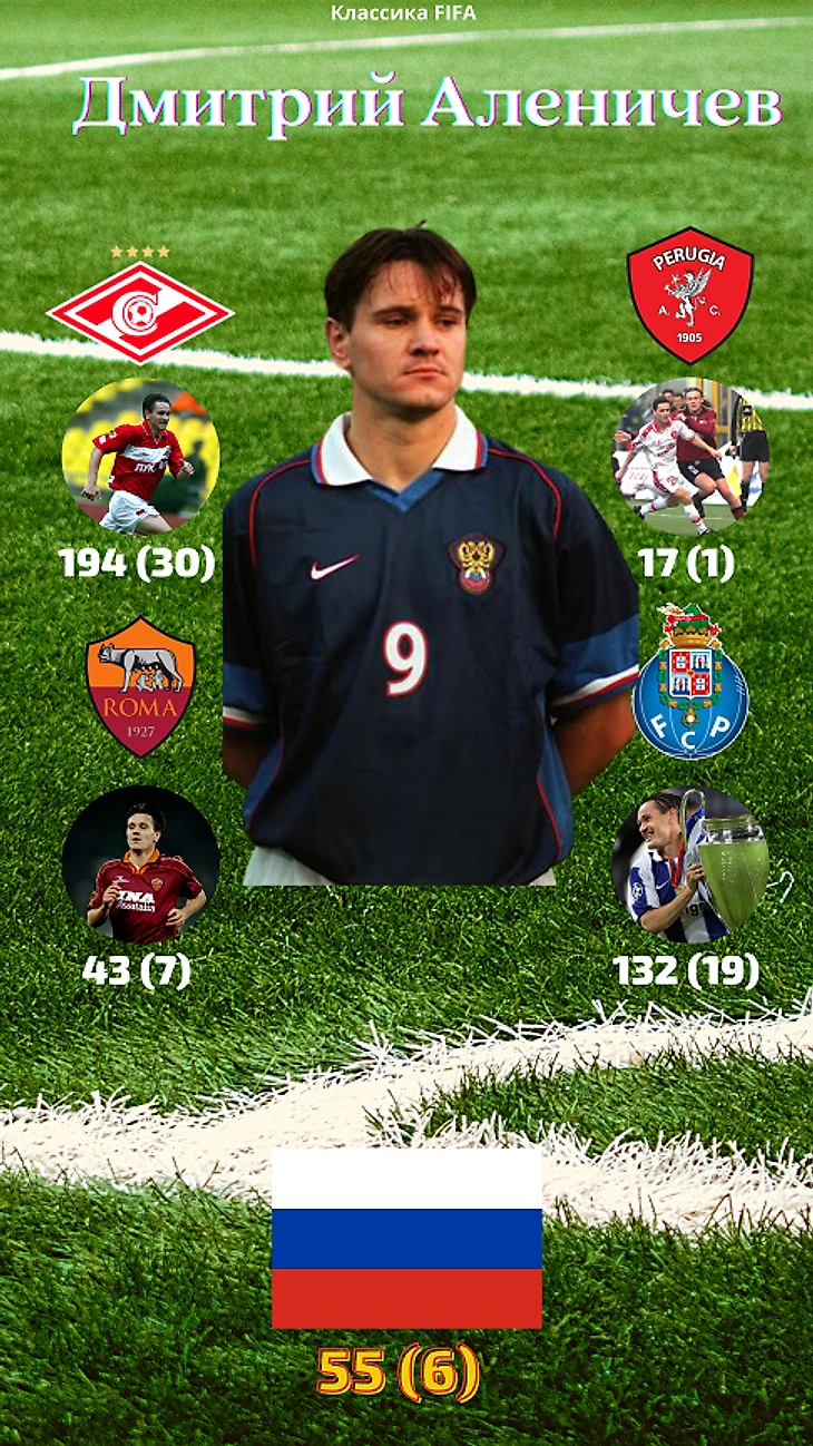 Левый полузащитник – Дмитрий Аленичев. Родился в небольшом поселке в Псковской области. На юношеском уровне играл за местные клубы – великолукскую «Чайку» и псковский «Машиностроитель», откуда перешел в московский «Локомотив». Также играл за московский «Спартак», итальянские «Рому» и «Перуджу» и португальский «Порту». Больше всего игр провел именно за португальский клуб и «Спартак». 4-кратный чемпион России, 2-кратный обладатель кубка России со «Спартаком», с «Порту» по два раза выигрывал чемпионат и кубок Португалии, а также Кубок УЕФА в сезоне 2002/03 и Лигу чемпионов в сезоне 2003/04. Один из тех немногих игроков, кто забивал голы в финалах двух еврокубков. Участник одного Чемпионата Европы и одного Чемпионата мира. За сборную России провел 55 игр, забил 6 голов.