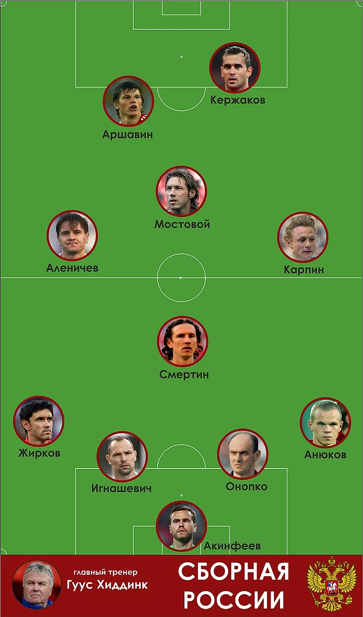 Тренер – Гуус Хиддинк. Родился в нидерландском городке Варссевелд, недалеко от границы с ФРГ. Играл за «Де Графсхап», «НЕК», «ПСВ», успел поиграть и в США. Тренерскую карьеру начал в «ПСВ». С 2006 по 2010 год возглавлял сборную России, с которой стал бронзовым призером Чемпионата Европы 2008 года. Сейчас тренирует сборную небольшого карибского острова Кюрасао – бывшей колонии Нидерландов. Другие достижения: 6 чемпионств в Голландии и Кубок европейских чемпионов сезона 1987/88 с «ПСВ», дважды занимал 4-е место на Чемпионатах мира – в 1998 году со сборной Голландии, в 2002 году – с Южной Кореей.
