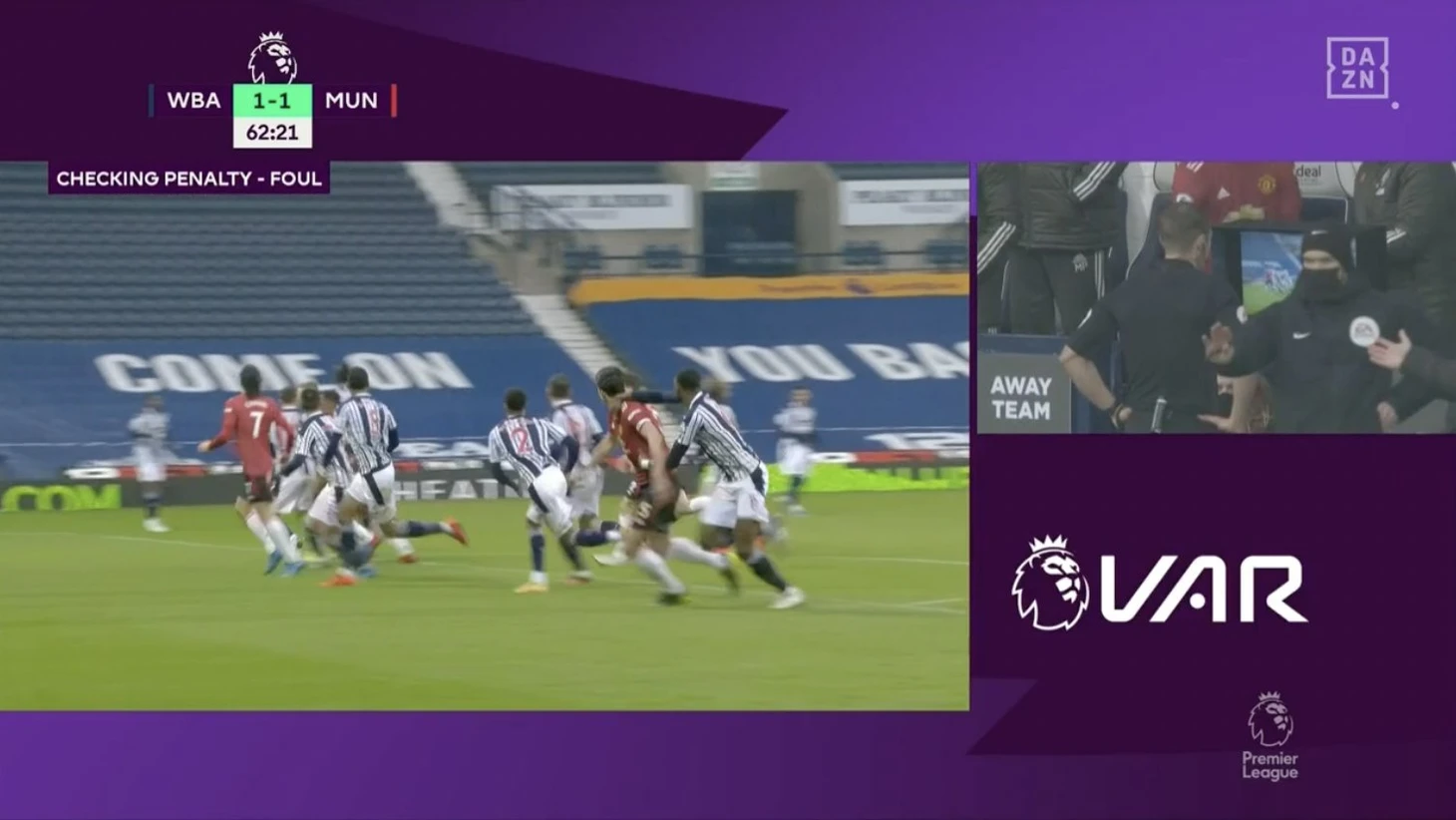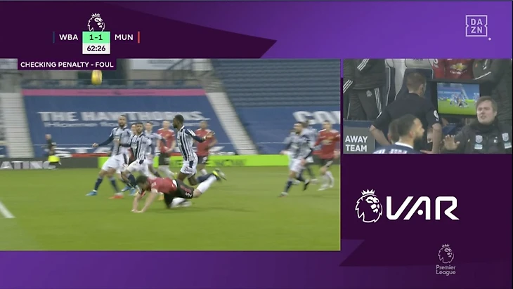 На 62-й минуте капитан «МЮ» Харри Магуайр упал в чужой штрафной после контакта с защитником Семи Аджайи. Судья Крэйг Поусон поставил пенальти, но потом пошел смотреть видео – и в итоге отменил решение: падение все-таки не тянуло на 11-метровый.