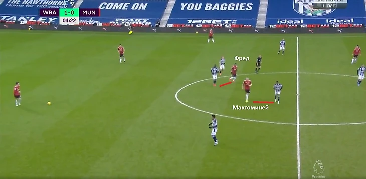 Помимо активного прессинга «Альбион» старался перекрывать центр поля, направляя атаки «красных» во фланги. Опорные полузащитники «Манчестера» Мактоминей и Фред были постоянно под опекой и при получении мяча оказывались под давлением и были вынуждены отдавать мяч обратно центральным защитникам - продвижения мяча затруднялось.