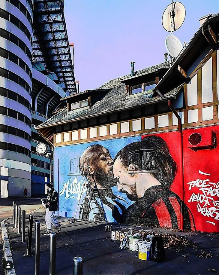Что скрывать, эту фотку прекрасного творения рук уличных художников, которая появилась за углом от главного миланского стадио имени Джузеппе Миацца, он же Сан-Сиро, я подрезал в инста-аккаунте матч.тв. Судя по комментам, первоисточник вызывает кучу вопросов у опытных юзеров. Я оставляю право сисадминам и ссм-манагерам накручивать себе рейтинги, лайки, сердечки и прочие нештяки. Но так как в цифровой век искусство уж точно принадлежит народу, давайте же просто насладимся этим по-настоящему шедевром стрит-арта, посвященного горячим перипетиям миланоского дерби 1/4 Кубка Италии.