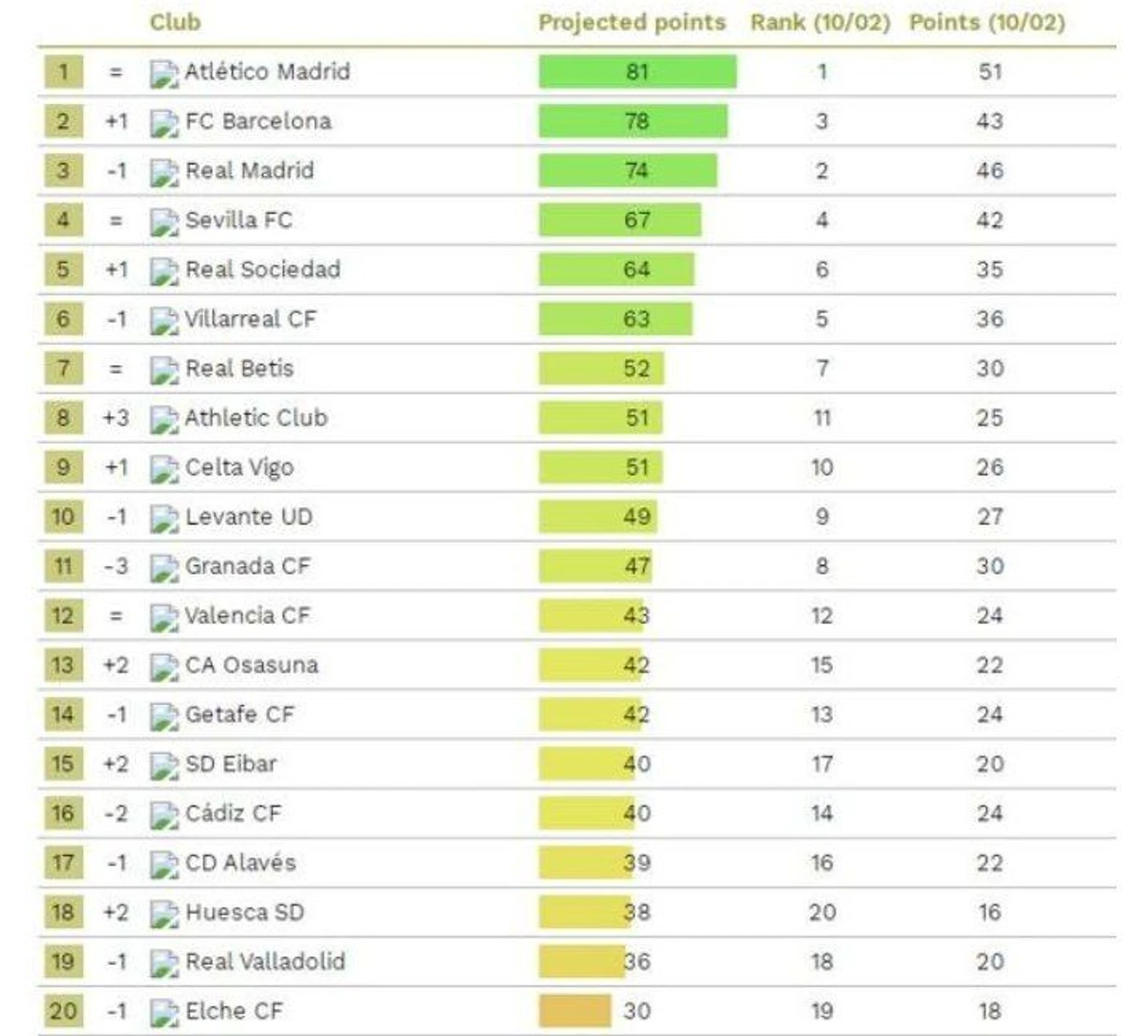 Престижная футбольная ассоциация CIES опубликовала отчет, в котором с помощью статистической модели оценивает окончательную классификацию ЛаЛиги с учетом ряда параметров.
