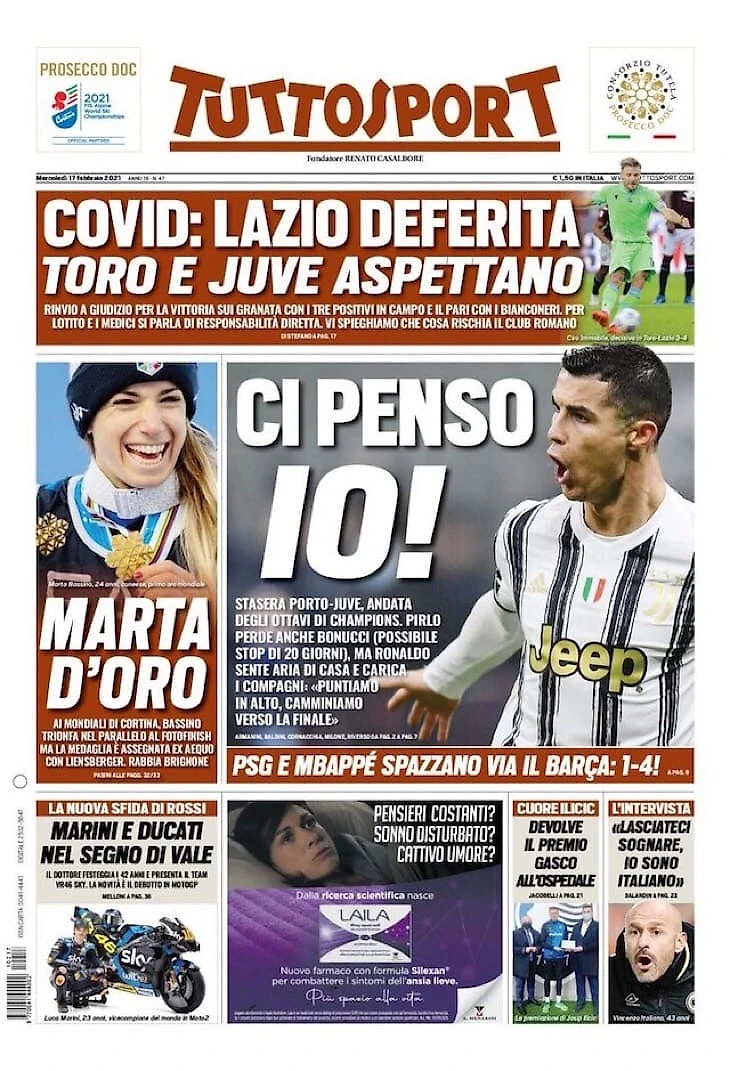 Лига Чемпионов, начинается 1/8-финала с «Порту»: бронированный выезд. Пирло верит: «Будем бороться до самого конца, хочу играть даже я». Тренер потерял Бонуччи, но готовит Дибалу и Рэмси. Аньелли: «Конте? Жест любви».