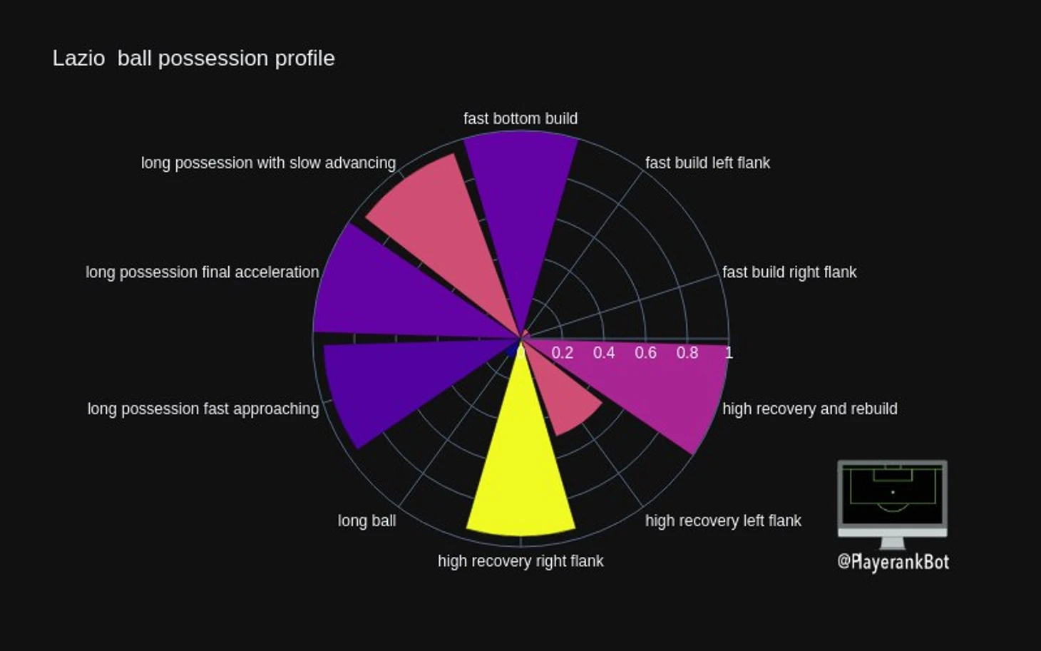 «Лацио» предлагал свой традиционный Г-образный билдап: Ачерби поднимался выше Худта и Патрика, уходил больше во фланг, в то время как ниже опускался Лейва. Вероятно, идея заключалась примерно в том же, что и против «Аталанты»: выманить соперника в прессинг и за счёт забросов в центр поля искать возможности для быстрых атак.