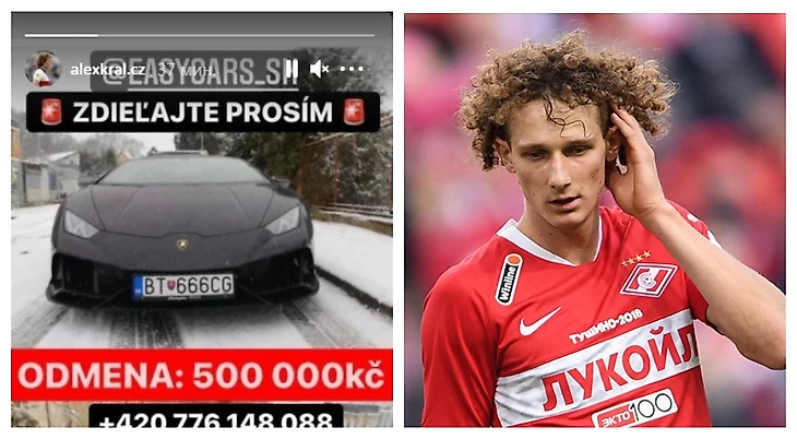 На страничке полузащитника «Спартака» Алекса Крала в Instagram появилась информация о пропаже автомобиля Lamborghini Huracan, который в последний раз видели в Праге.