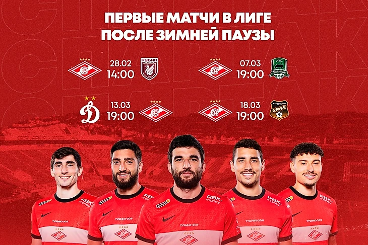 Практически всю весну «Спартак» проведет в Москве. Столицу придется покинуть лишь три раза — чтобы слетать в Ростов и Грозный, а также съездить в Тулу. У красно-белых лучший календарь из претендентов на медали.