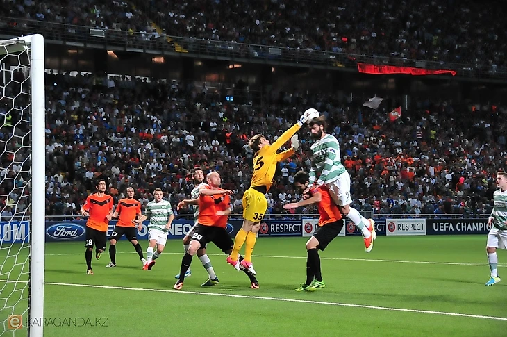 В первый матче который проходил в Чехии, «горняки» в упорной борьбе минимально уступил 0:1. Ну а 24 июля, стал историческим для Караганды, именно в этот день на стадионе впервые зазвучал гимн лиги чемпионов и состоялась ответная игра. И родные стены начали помогать с первых минут, но забили лишь на 40-й минуте с пенальти. В итоге матч перешёл в овертайм. Где на последней минуте встречи игроки «Слована» сравняли счёт.