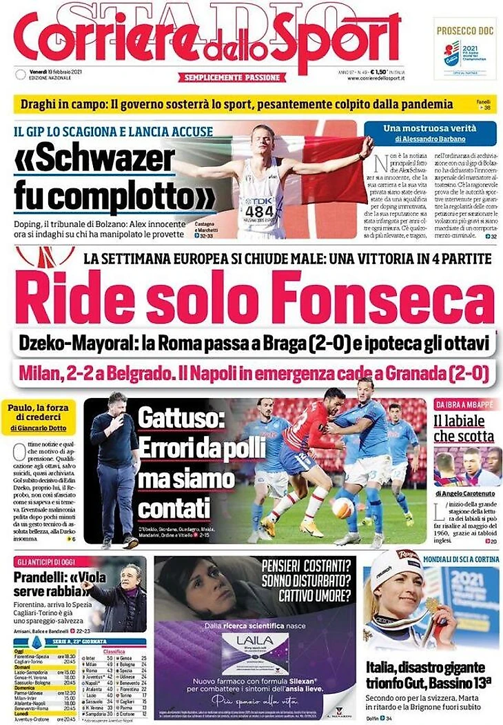 По мнению журналистов данной газеты именно команда из Рима показала достойную игру и может быть спокойна перед ответным матчем. «Милан» же, как было написано в другой итальянской газете, находится «в подвешенном состоянии» перед грядущим дерби с «Интером». Спад россонери на лицо, после поражения от «Специи», теперь проваленная концовка матча в Белграде и до кучи очередная травма Беннасера, который с ноября не может вернуться на прежний уровень. Посмотрим, каким получится дерби.