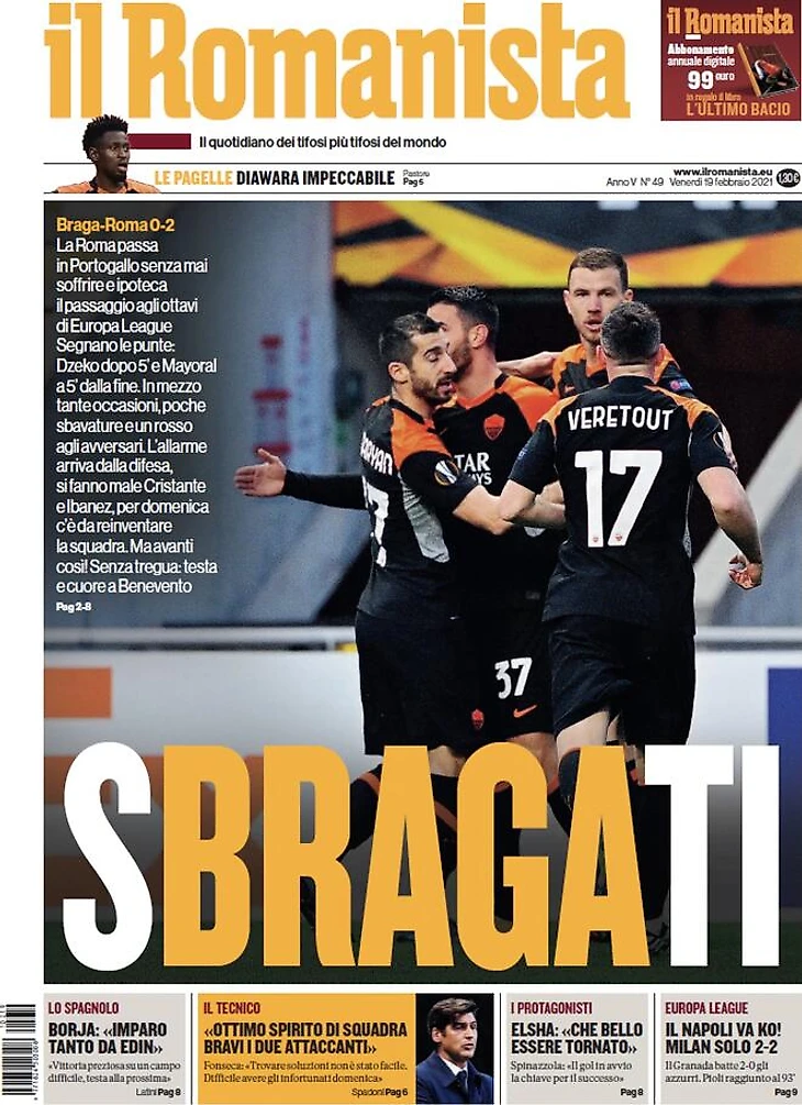 Римляне в восторге от выступления своей команды, которая смогла сыграть на ноль против одной из самых сильных команд Португалии на данный момент. Итальянцы отмечают, что «Брага» до этого матча всегда забивала в домашних матчах минимум 1-2 гола и не проигрывала с сентября месяца. Однако подопечные Пауло Фонсеки прервали эту серия португальцев. Так же отметили эффектное возвращение в стартовый состав Амаду Диавара, который провёл очень сильный матч, а так же признают лучшим игроком матча Леонардо Спинаццолу.