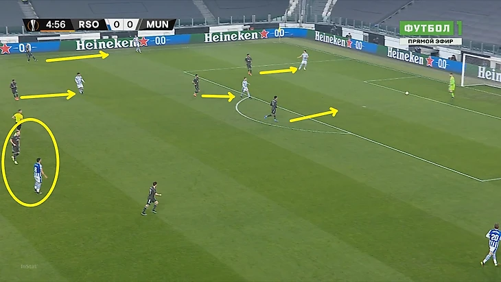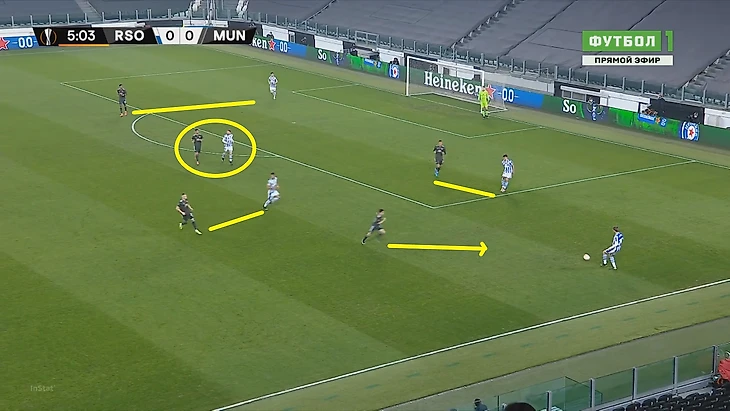 Нельзя не отметить ситуативно некачественный прессинг Сосьедада, периодически дававший гостям возможность разбивать его длинными передачами.