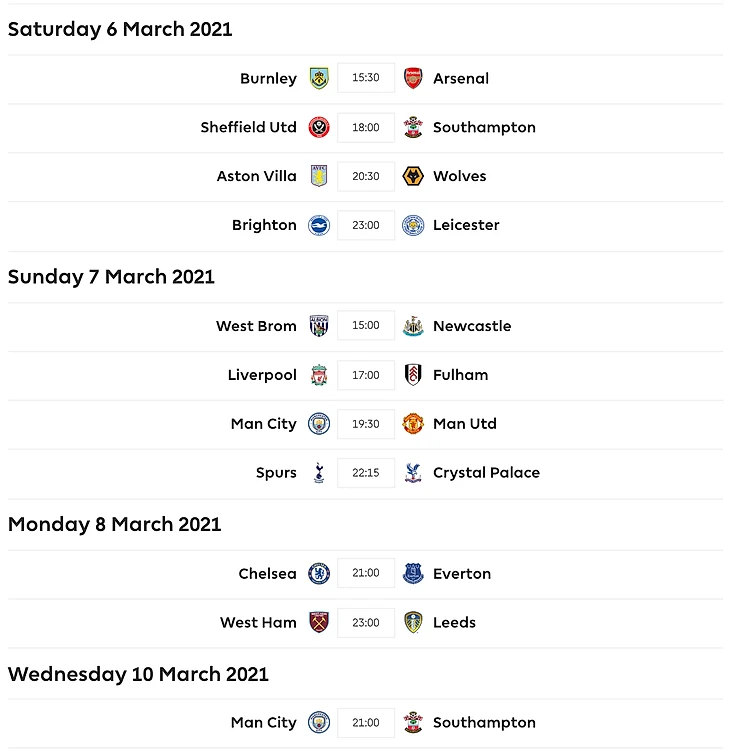 Матчи 27 тура + перенесённый матч 33 тура, 6-10 марта