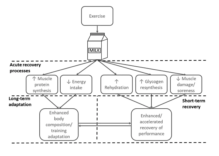Хотя протеиновые добавки или коммерческие напитки с углеводами могут быть эффективными для облегчения восстановления после тренировки, молоко также оказалось не менее эффективным, поскольку оно также широко доступно, дешево и практично. Подводя итог, можно сказать, что его комбинация с углеводами (например, 500 мл молока с шоколадом после тренировки) кажется рекомендуемым вариантом для облегчения восстановления энергии и мышц (особенно если спортсмен не проявляет желудочно-кишечных симптомов при его употреблении)