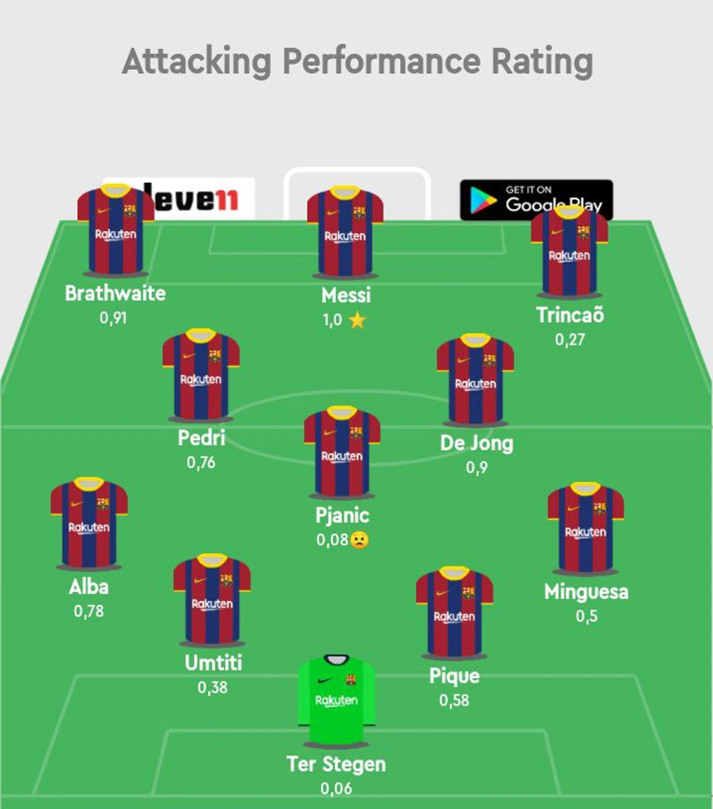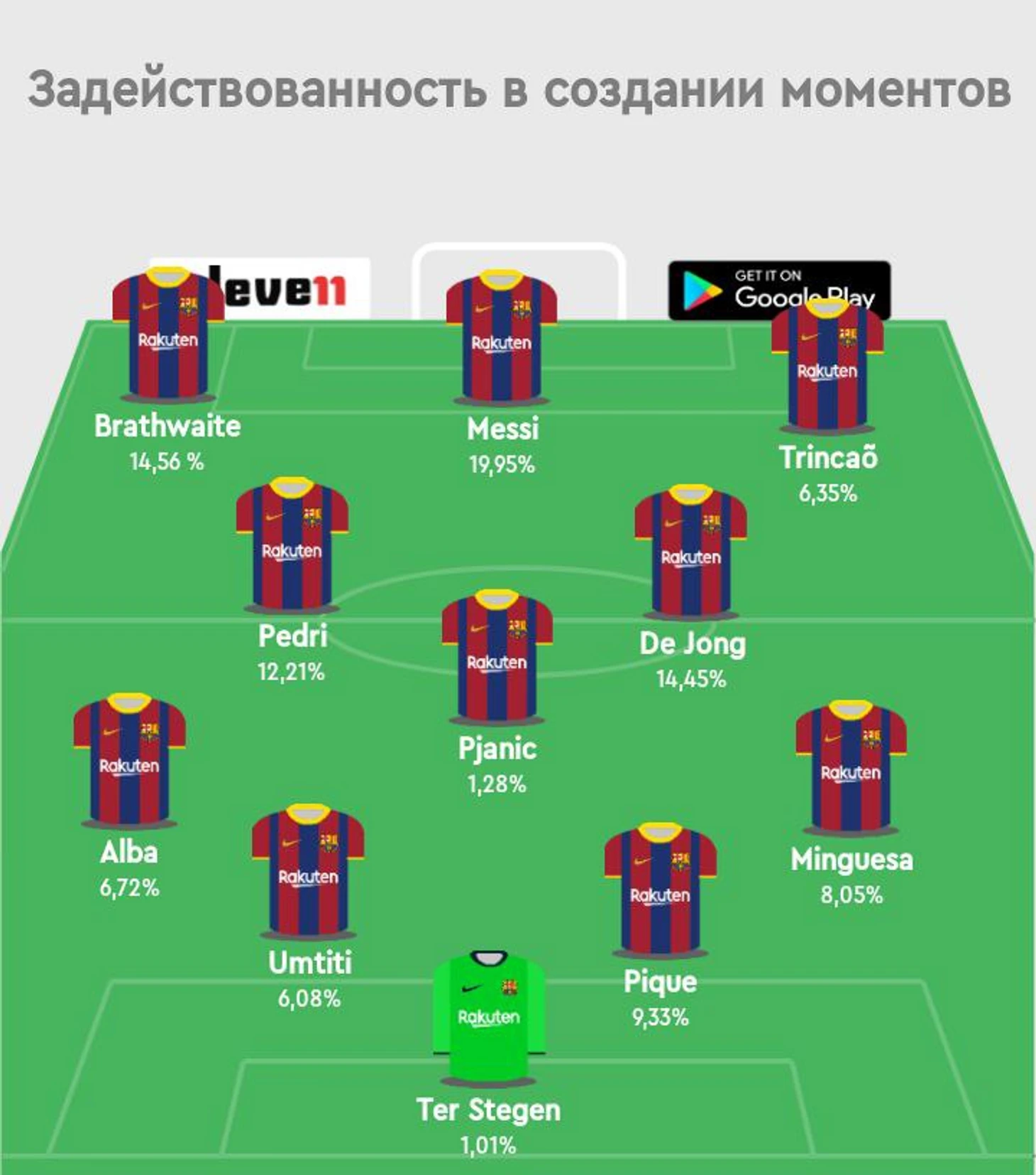 Теперь чуть подробнее о том, как «Барселона» перестроилась во втором тайме, и почему Брейтуэйт стал эффективен? Ключевым элементом победы стал не перевод Педри в опорную зону, а переход датчанина на позицию ложной девятки. Месси врывался в штрафную, а Мартин хорошо с ним комбинировал.