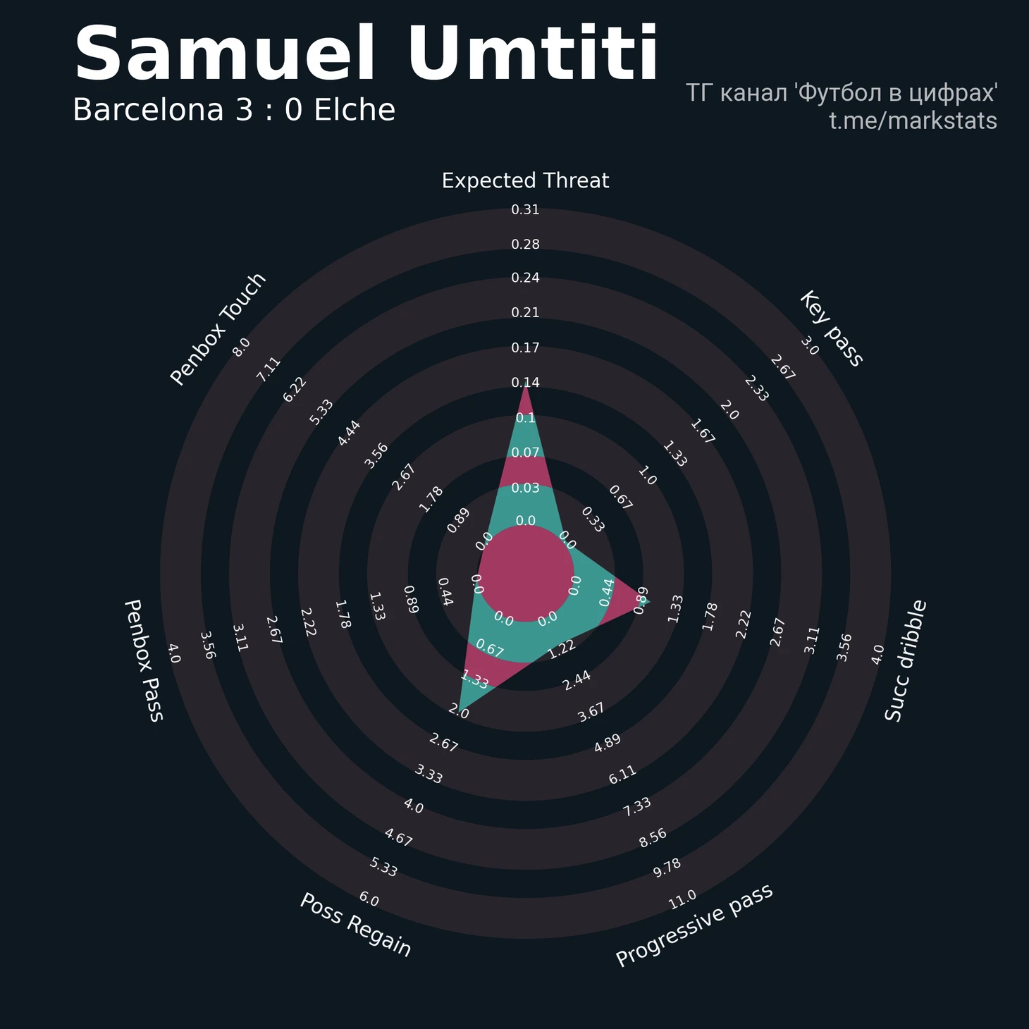 Умтити не совершил результативных ошибок, но ошибок в целом было предостаточно. Очень много опасности у "Эльче" в первом тайме в основном были следствием позиционных ошибок и недоработок Умтити. Будь соперник мастеровитее — точно бы наказал. 6,8.