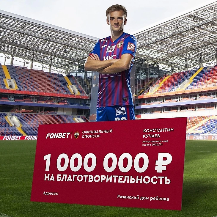 Им стал воспитанник рязанского футбола Константин Кучаев, поразивший ворота подмосковных «Химок» в матче первого тура. Полузащитник ПФК ЦСКА решил передать 1 млн рублей одному из детских медицинских учреждений родного города Рязани. Константин Кучаев, полузащитник ПФК ЦСКА и сборной России: — Рад, что мне выпала возможность оказать такую благотворительную помощь. Сразу решил, что направлю ее учреждению именно в Рязани или Рязанской области. Это мой родной город, и я хочу как можно больше помогать своему региону. Счастлив, что Фонбет проявил такую инициативу, и мы смогли помочь Рязанскому Дому ребенка. Дети - это наше будущее, им надо помогать в первую очередь. Знаю, что выбранное мной учреждение оказывает помощь детям с различными заболеваниями, детям-сиротам. Надеюсь, что оборудование, которое закуплено на эти деньги, станет большим подспорьем в работе с детьми. Елена Шатская, главный врач Рязанского Дома ребенка: — Мы очень благодарны Константину и Фонбет за помощь! Выделенные нам средства были направлены на покупку реабилитационной аппаратуры и установку уличной веранды. Гордимся тем, что наш земляк выступает за ПФК ЦСКА и вызывается в сборную России, но при этом не забывает о малой родине. Желаем ему здоровья и великих спортивных достижений! Мы уверены, что мастерство и талант Константина принесут большую пользу клубу и национальной команде. Рязанский Дом ребенка оказывает медицинскую, педагогическую и социальную помощь детям-сиротам, в том числе с различными формами поражения центральной нервной системы и с нарушением психики. Константин Кучаев и Фонбет помогли приобрести новое оборудование: вибротренажер и реабилитационный костюм для занятий с детьми, систему фильтрации для бассейна, пульт дозирования химических реагентов, а также установить новую уличную веранду.