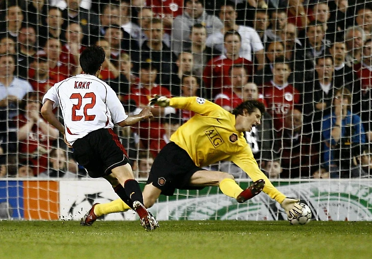 Через 2 года они снова встретились. Ставки стали еще выше. Команды находятся в шаге от финала. И снова первый матч на «Олд Траффорде». Но «Манчестер Юнайтед» на этот раз не стал откладывать дело в долгий ящик и сразу принялся за дело. Уже на 5-ой минуте Роналду открывает счет. Матч не был скучным. Команды не закрывались, следовательно только в первом тайме мы увидели не один гол. На 22 минуте бразильский волшебник Кака поражает ворота Ван Дер Сара. Тоже самое происходит через 15 минут. Кака оформляет дубль на «Олд Траффорде», и команды направились в раздевалку.
