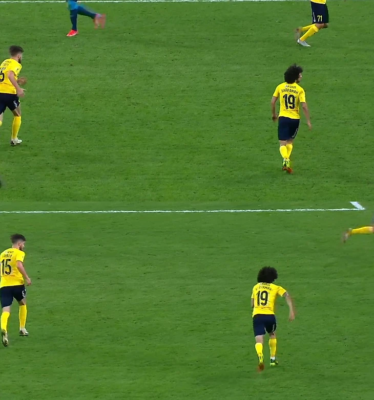 Обратите внимание на игрока «Ростова»: Байрамян спокойно возвращается назад, потому что не услышал свистка о возобновлении игры – свистка-то и не было. Хорен рванул только после того, как увидел движение Караваева.