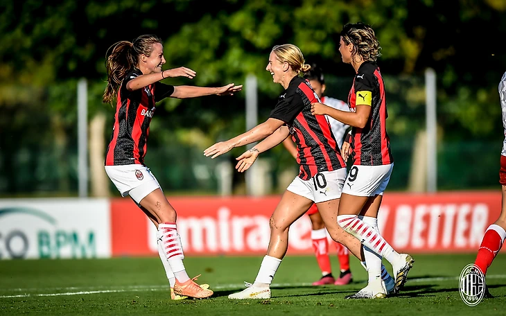 "Сассуоло" упёрся в матчах с девчонками красно-чёрного Дьявола. "Милан", ведя в счёте на выезде, пропустил в компенсированное время, а затем банда Джампьеро Пьовани могла и выиграть на последних секундах. Пьовани - опытный тренер и бывший футболист Серии А давно в мире женского кальчо и хорошо знает подход к своим чутким подопечным, потому результат не удивил. У "чёрно-зелёных" классный состав (чешка Камила Дубкова, форвард Пироне, юная мальтийская звёздочка кальчо Хейли Бугежа), тем более президент филиала - легенда женского кальчо Бетти Виньотто, но иногда не хватает стабильности - ответная игра это доказала. Гостьи сражались с упорством, но заигрались и заработали удаление. Итог: 0:0 и команда Ганца в полуфинале.