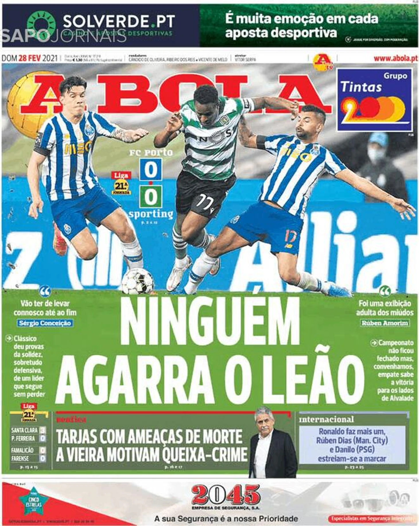 В Португалии так же прошёл не менее важный матч. «A Bola» вышла со следующей обложкой: