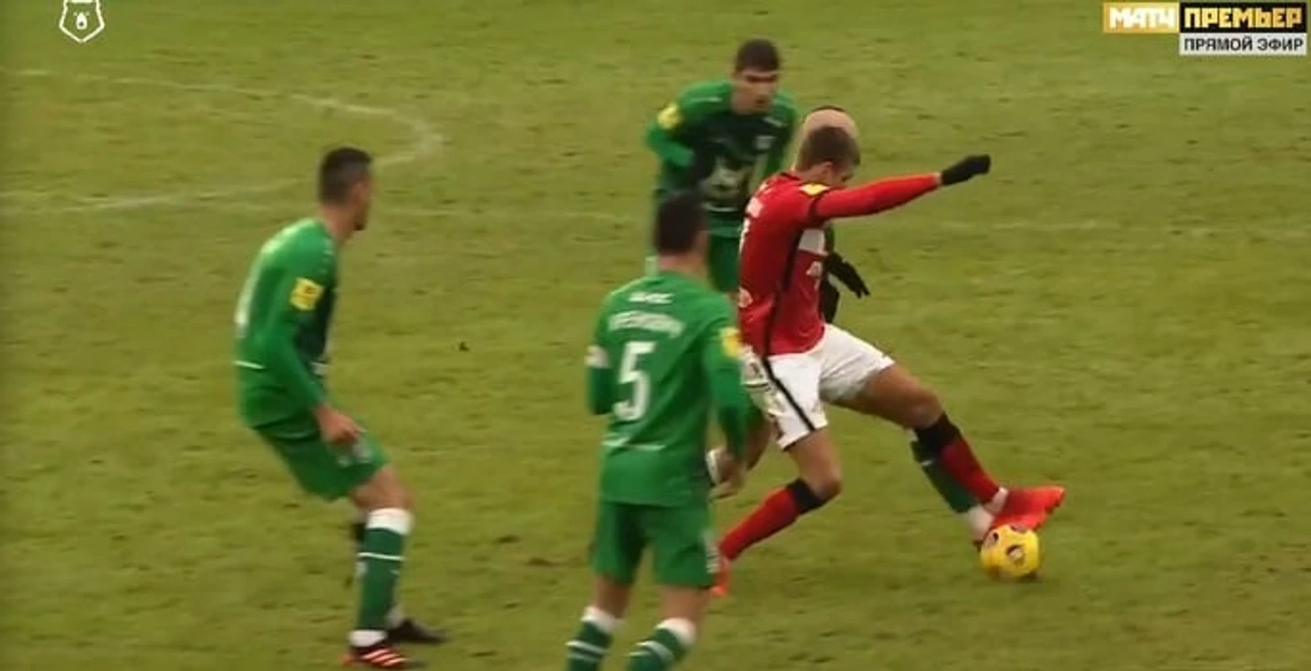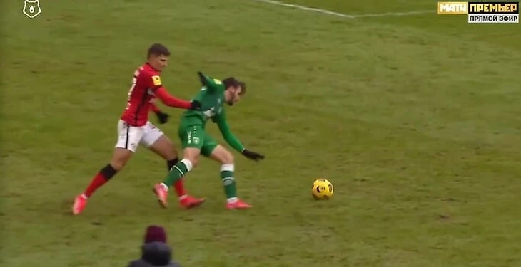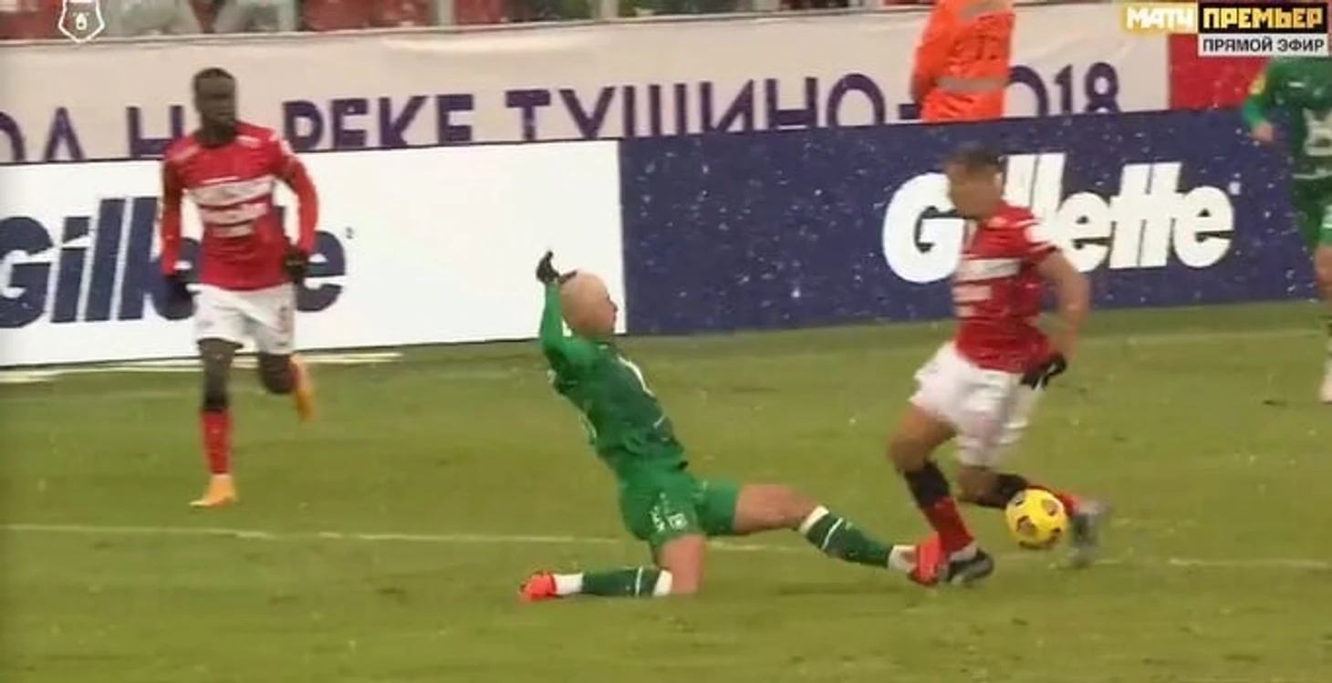 Его удалили в конце первого тайма. Полузащитник «Спартака» на 36-й минуте схватил Хвичу, сорвал перспективную атаку и получил желтую.
