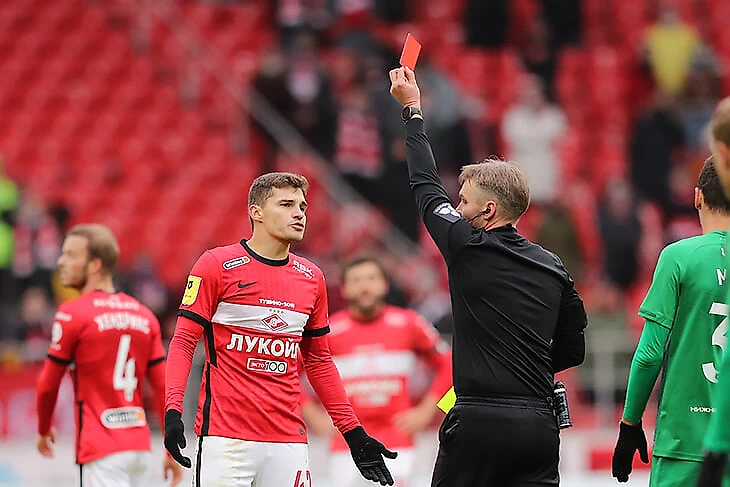 У «Спартака»-2021 тренд на красные карточки: вернулись с зимней паузы удалением Мозеса в Кубке России, теперь красную схватил Роман Зобнин.