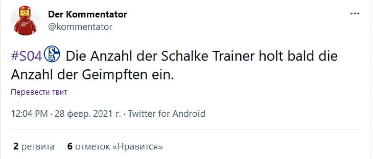 Количество тренеров «Шальке» скоро будет равно количеству вакцинированных.