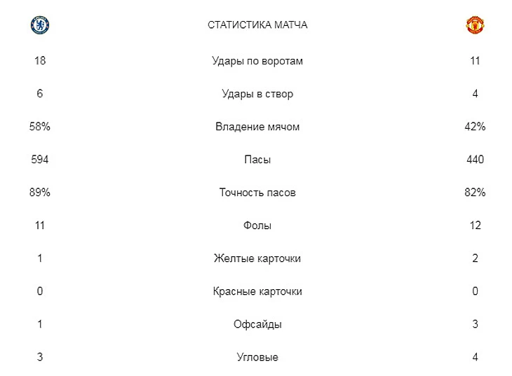 Челси - МЮ. Обзор матча в цифрах, составах, статистике и не только