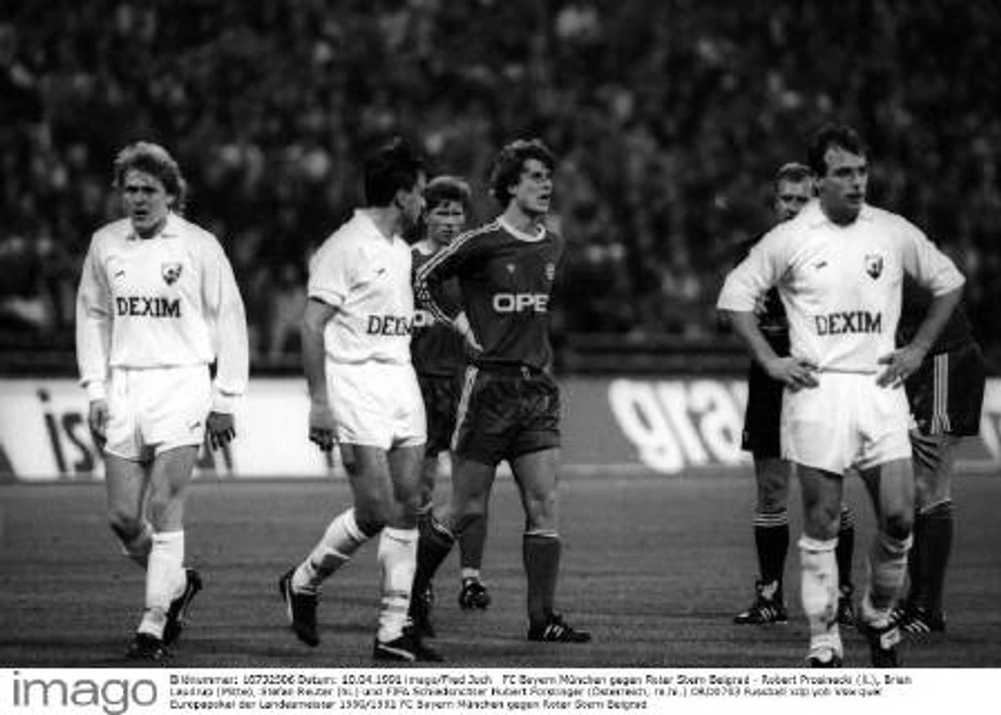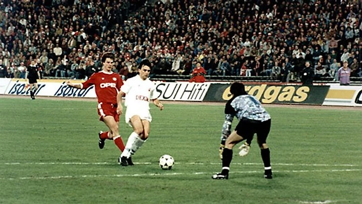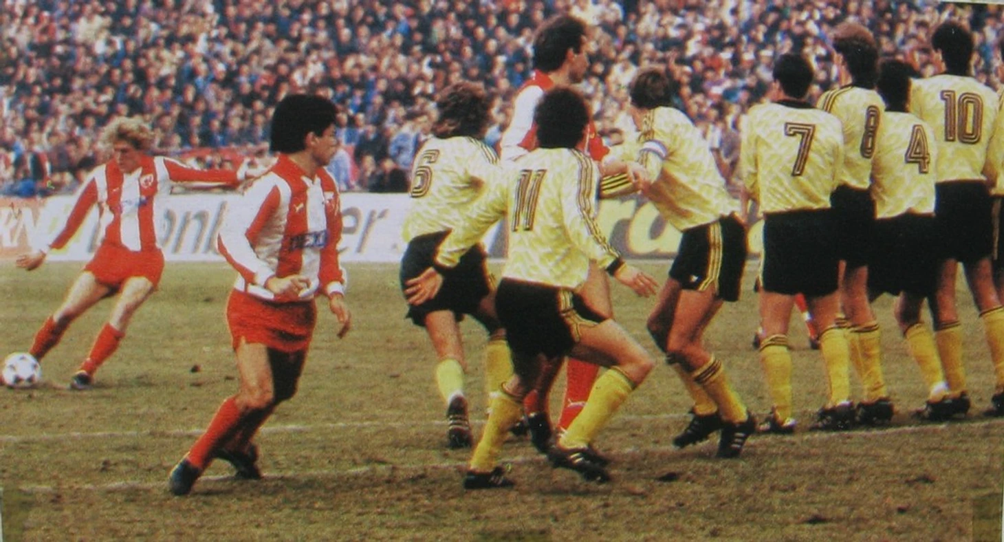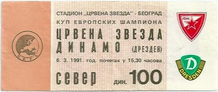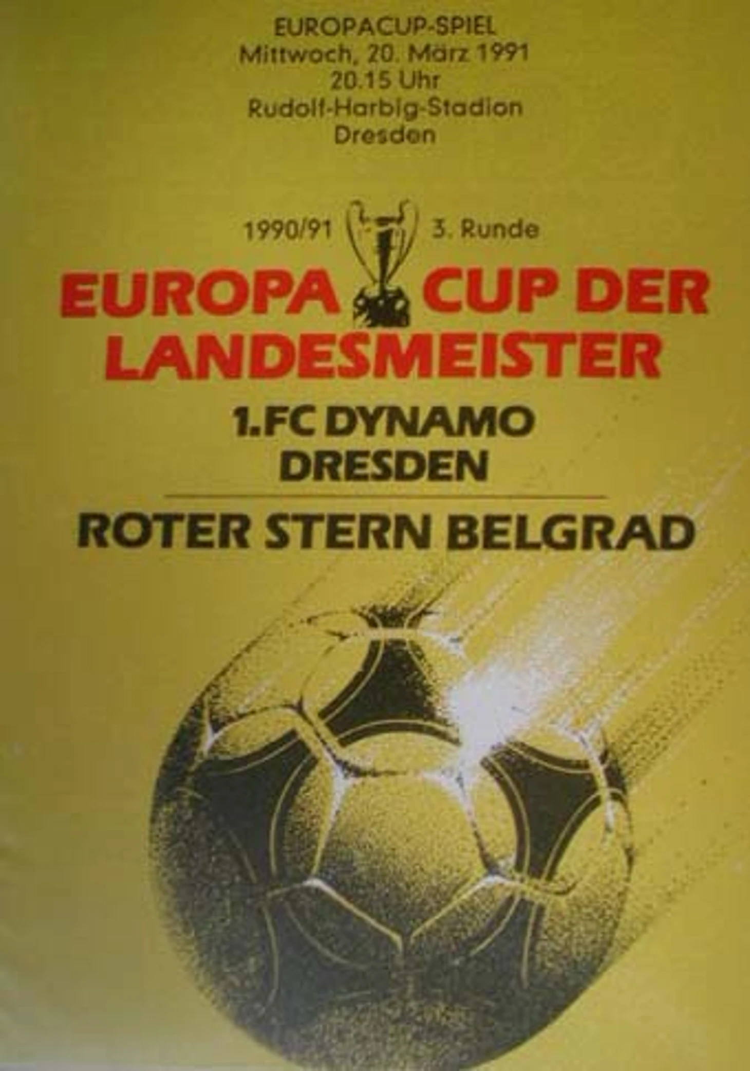 6 марта 1991 года. Германской Демократической Республики уже не существует. Несмотря на это, чемпионат страны еще проводится (впрочем, последний раз в истории), а дрезденское Динамо (чемпион сезона 1989-1990) играет в Кубке Европейских Чемпионов, причем достаточно успешно. В начале славных дел восточные немцы практически в одну калитку переезжают люксембургский Унион 6:1, а в 1/8 финала лишь по пенальти обыгрывают Мальмё, тем самым устанавливая очень важное достижение для уже не существующего государства. Как и Грассхоппер, дрезденцы делают золотой дубль и имеют далеко идущие планы. Главный тренер - Райнхард Хефнер, в атаке солирует последний футболист года в ГДР Торстен Гютшов. Впрочем, и Звезда не сидит сложа руки. На поле появляется Михайлович, а стадион Райко Митич, как всегда в таких матчах, переполнен, 85 000 зрителей приехало со всей Югославии посмотреть на столь важное событие!