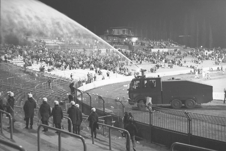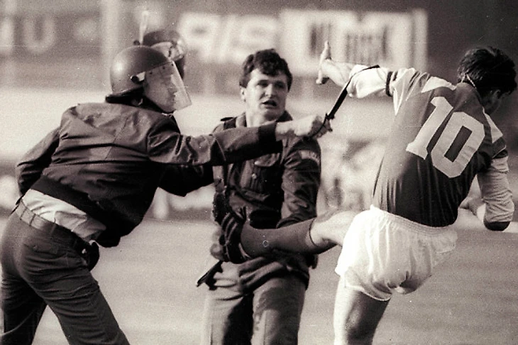 Надо ли говорить, что противостояние одного из двух флагманов сербского футбола - Црвены Звезды и флагмана футбола Хорватии - загребского Динамо всегда было жарким и особо принципальным. К началу 90-х годов отношения между двумя республиками стали существенно холоднее, в Хорватии принимали один за другим откровенно антисербские законы, направленные на дискриминацию сербского населения данной республики. Болельщики загребского клуба придерживались ультраправых взглядов, среди них было множество сторонников усташского движения, в то время, как приехавшие на поединок сербы были сторонниками великосербской идеи, среди них также активно набирали вес идеи четников - сербских великодержавных монархистов, чьим идеалом была Сербия на всей территории Югославии. Лидером фанатов ЦЗ был хорошо известный каждому, кто хорошо знаком с балканской историей Велько Ражнатович по прозвищу Аркан, криминальный авторитет и потенциальный герой любого американского боевика.