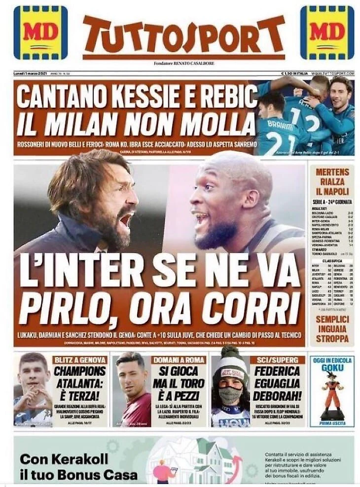 Победы «Интера» и «Милана», требование от Пирло изменить ситуацию и сократить отрыв, а также сегодняшнее решение по матчу «Лацио»-«Торино» – в утреннем обзоре заголовков итальянских спортивных изданий в блоге «В гостях у Кальчо».