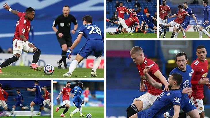Всему виной сражение, развернувшееся в средней трети футбольного поля. Ещё сезон назад, многие сказали бы до матча, что пара Канте-Ковачич съест центр поля у любого соперника. Да, Н'Голо уже не тот восьминогий повелитель опорной зоны, пусть и цифры его все равно поражают своей эффективностью (7 отборов, 4 перехвата, 1 блок и 1 вынос), но прогресс Скотти и Фреда, теневых героев МЮ, заметен на таком фоне ещё ярче. Фред, конечно, отстал немного от своего оппонента (3 отбора, 3 перехвата, 1 блок и 1 вынос), но все равно очень впечатляюще. Еще более впечатляюще выглядит карта оборонительных действий, включая фолы, четверки Канте-Ковачич-Фред-Мактоминей: