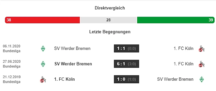 "Кёльн" не проигрывает "Вердеру" на протяжении 9 матчей (4 победы, 5 ничьих). Последняя победа бременцев на берегах Рейна датирована декабрём 2005 года