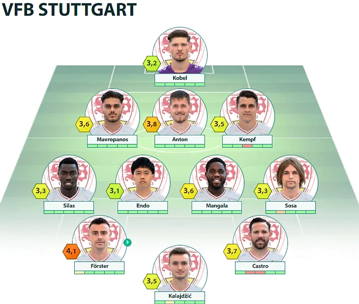 В матчах с командами из текущего ТОП-4 "Штутгарт" набрал всего одно очко. Этот успех пришёлся на матч первого круга с "Айнтрахтом" (2:2)