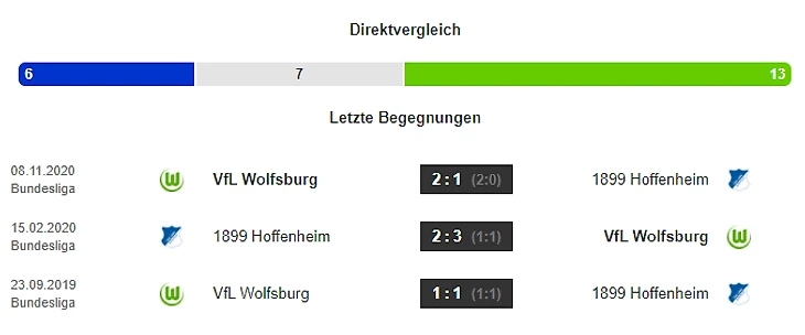 На протяжении пяти игр "Хоффенхайм" не может одолеть "Вольфсбург" (2 ничьих, 3 поражения)