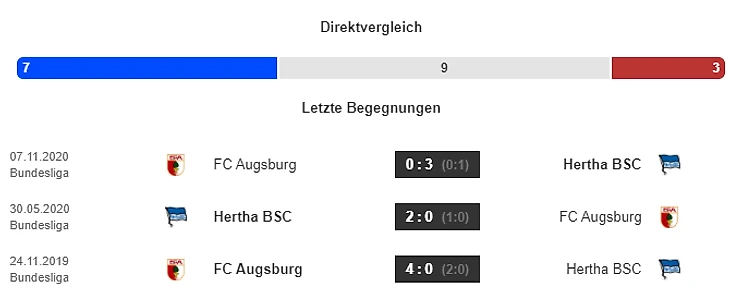 "Аугсбург" играет с "Гертой" вничью чаще, чем с любым другим соперником (8 раз)