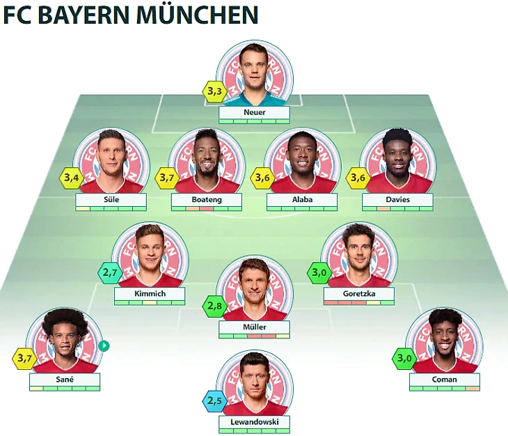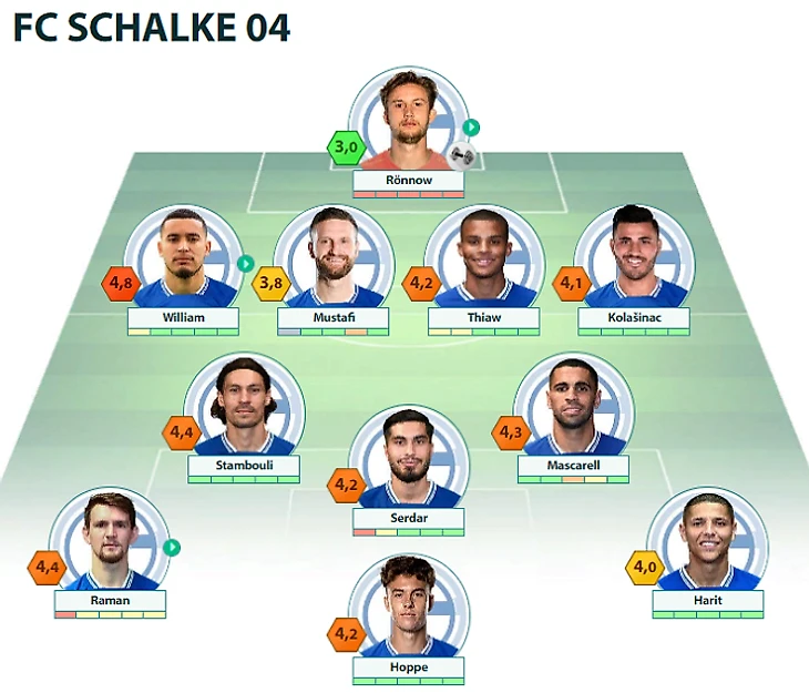 Потери (здесь и далее - версия ligainsider.de): Фэрманн, Хунтелар, Ут, Настасич, Людевик, Сане, Скрибски, Пасиенсия - нет