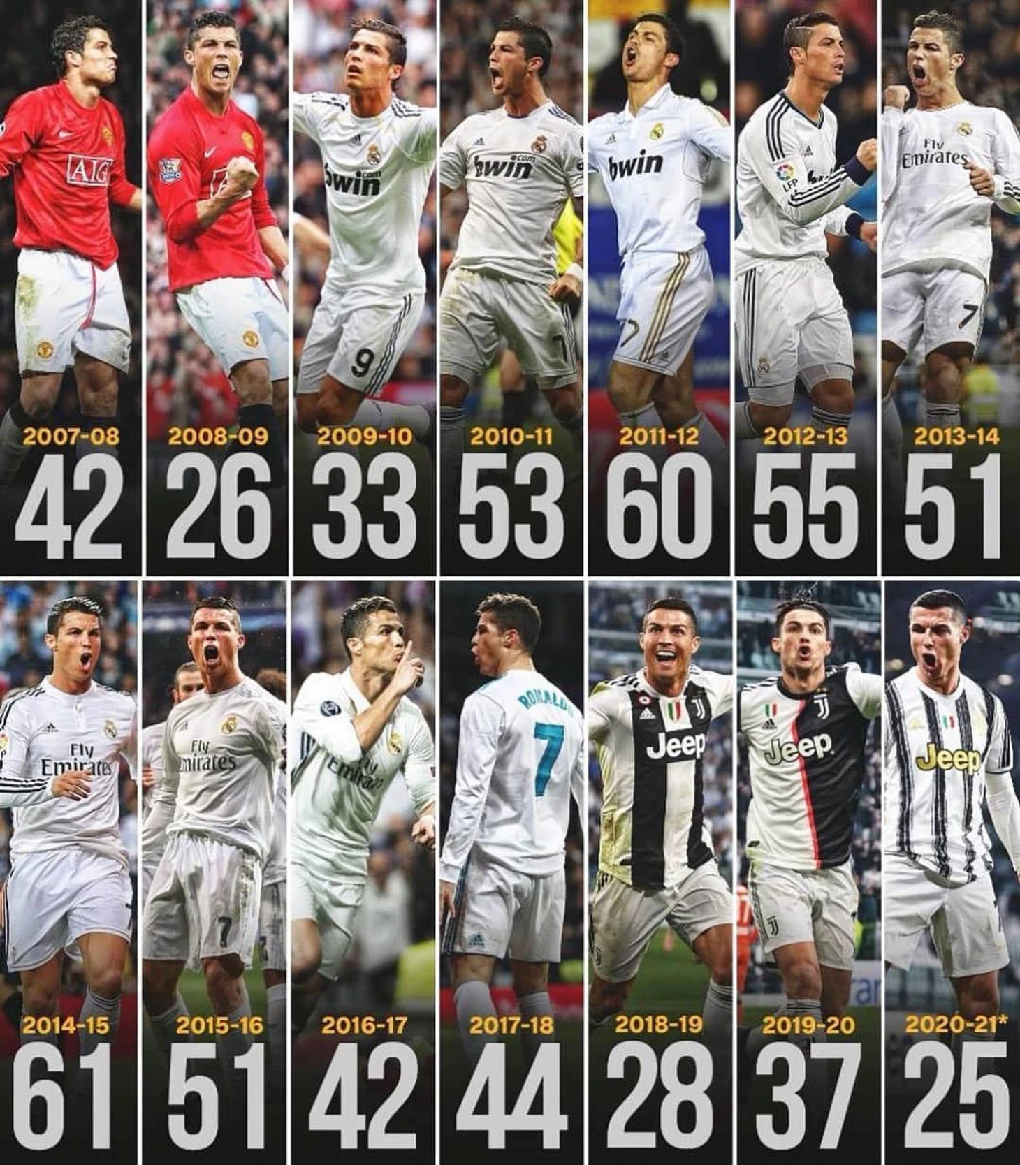 Последнем сезоне в МЮ, он уже сидел на чемоданах, потому и результативность упала. Первые сезоны в Мадриде и Турине — новая команда, новый чемпионат, адаптация и так далее.