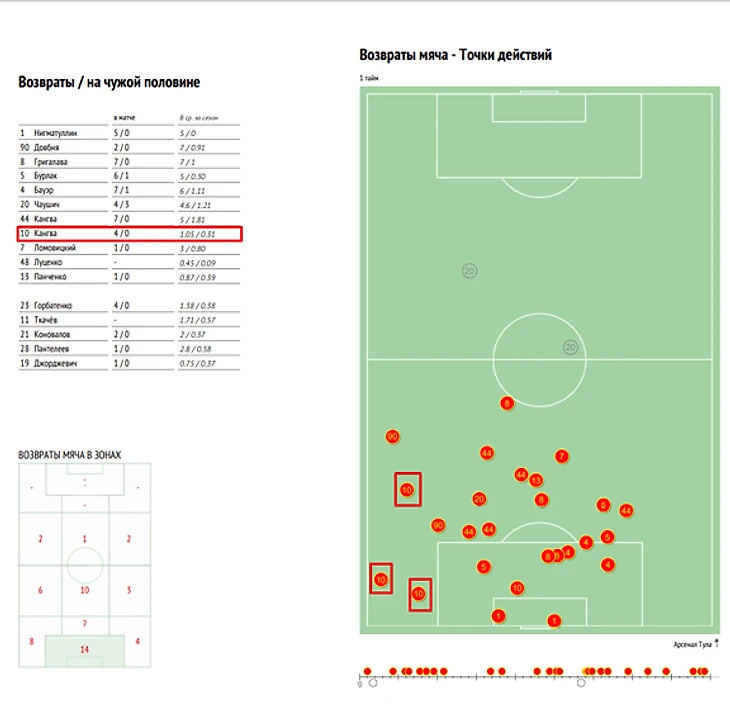 4-ый мяч «Сочи» забили после эффективного прессинга на половине поля соперника. Сочинцы на протяжении всего матча старались «закрывать» туляков на своей половине поля. Для сравнения, «Сочи» в 3 раза больше совершили возвратов мяча на половине поля соперника чем «Арсенал».