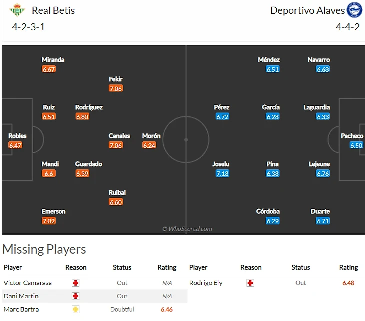 Но сентябрь ещё нескоро, а вот угроза остаться без вменяемого нападения в ближайшем туре – близка как никогда. И Набиль Фекир(8) и Борха Иглесиас(7,5) только-только залечили свои болячки и потому их участие в матче против Алавеса все ещё находится под вопросом. Кроме стрелков под угрозой выход на поле приболевшего Виктора Руиса(5)